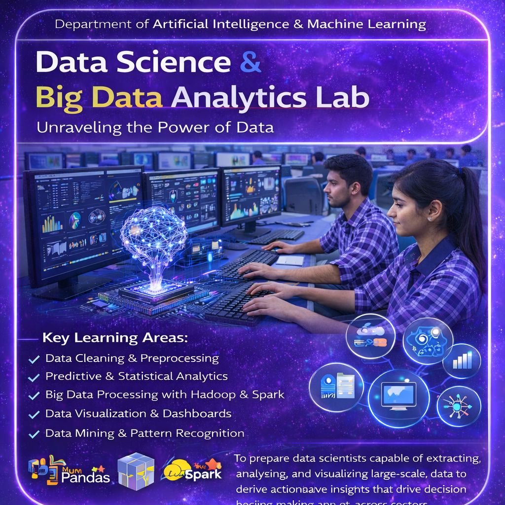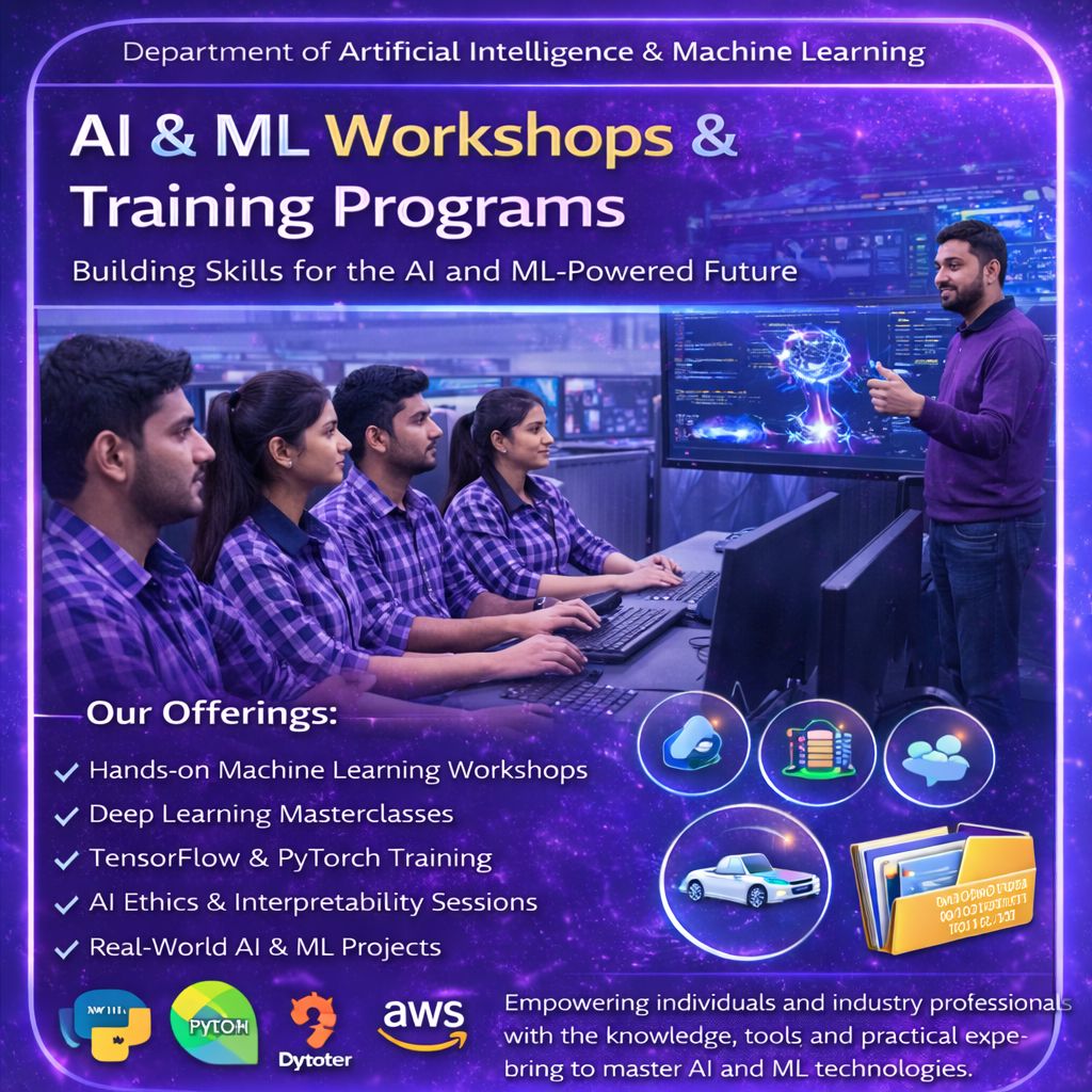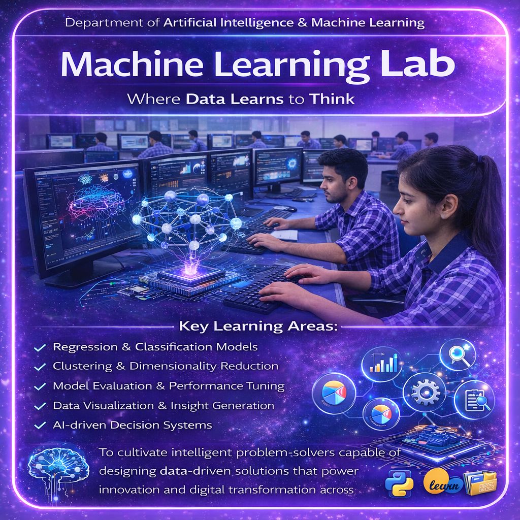 Mission: To deliver high-quality education in Artificial Intelligence and Machine Learning through a strong foundation in theoretical concepts and hands-on practical learning. The department is committed to promoting research, innovation, entrepreneurship, and industry collaboration while nurturing critical thinking, ethical responsibility, and lifelong learning among students to prepare them for successful careers and higher studies in emerging technologies
