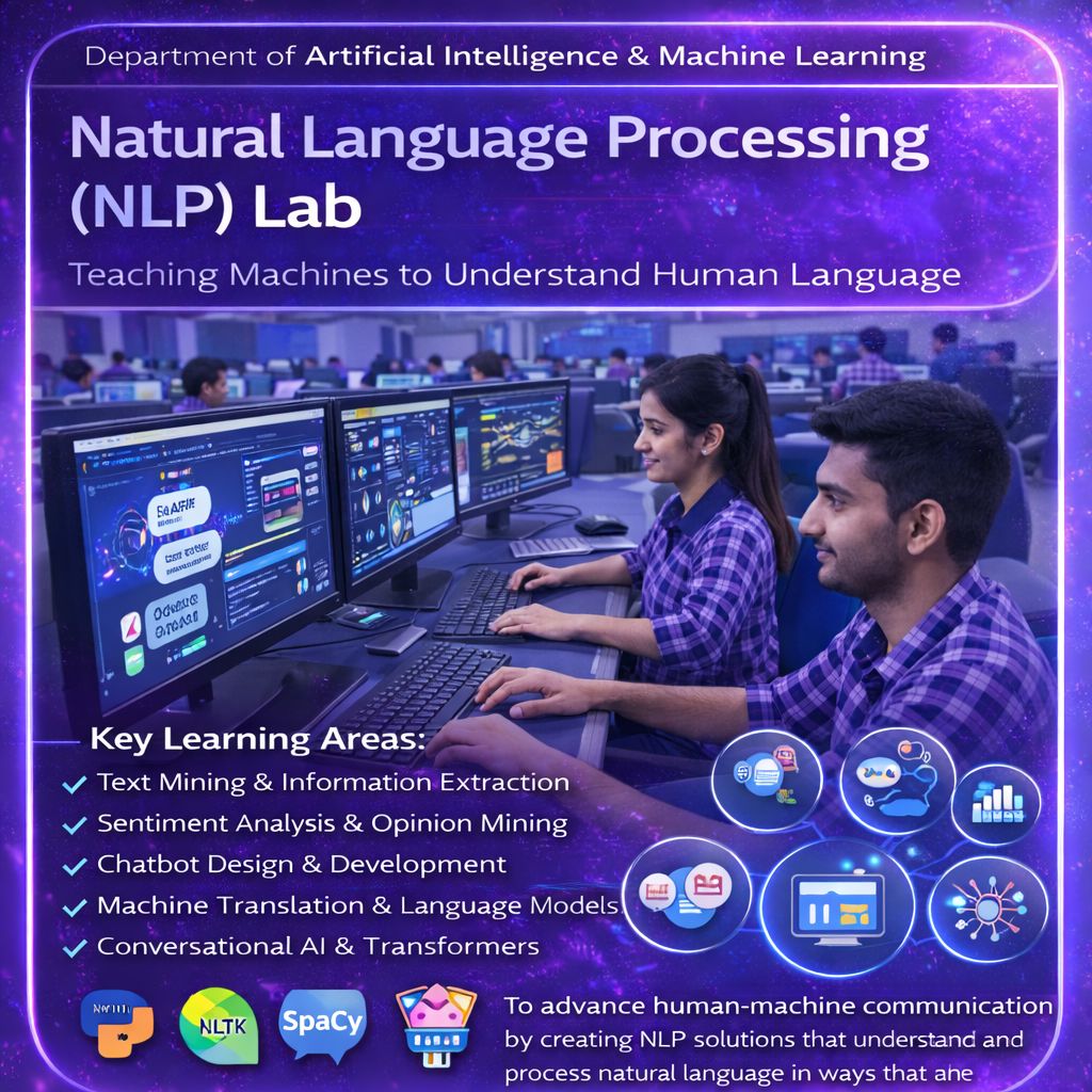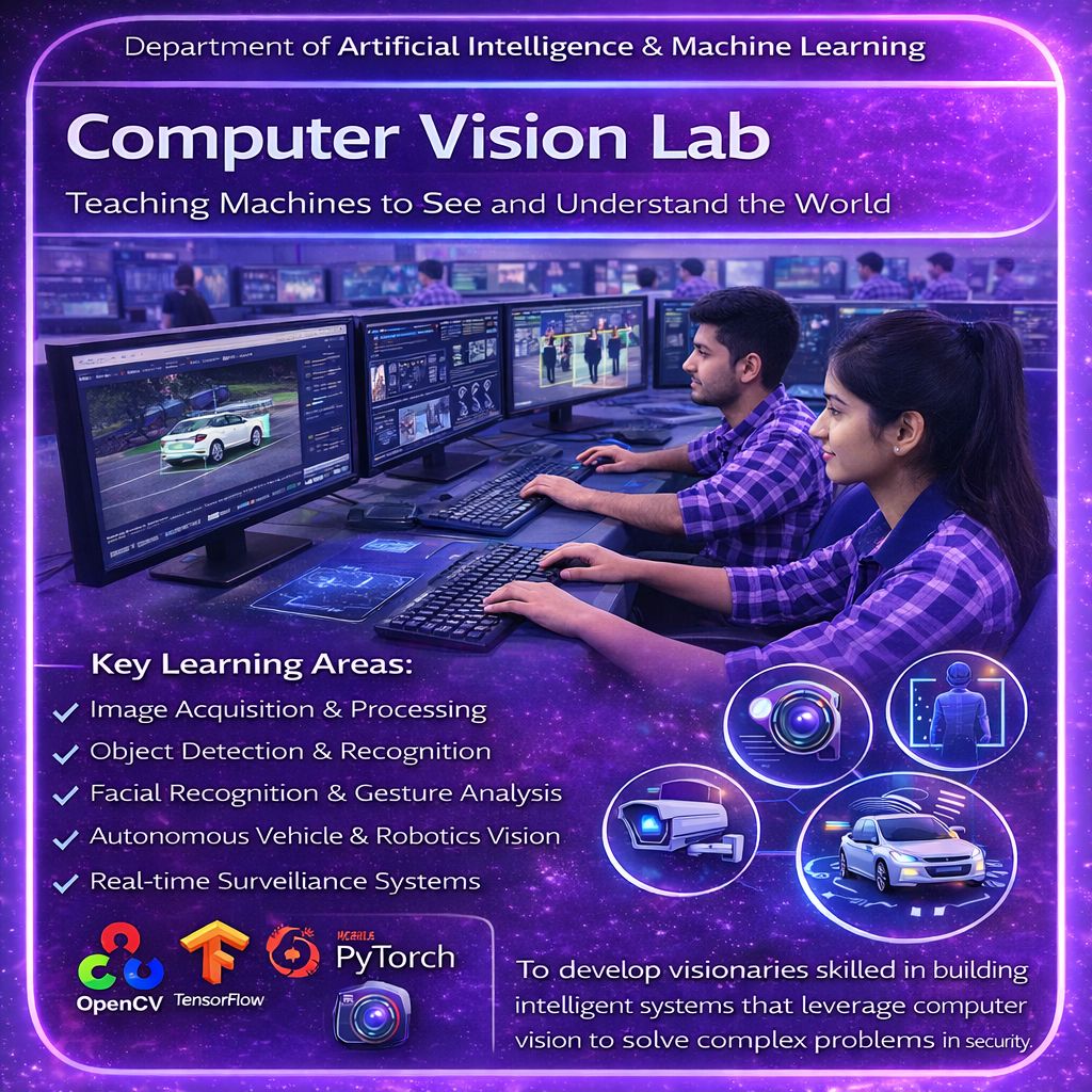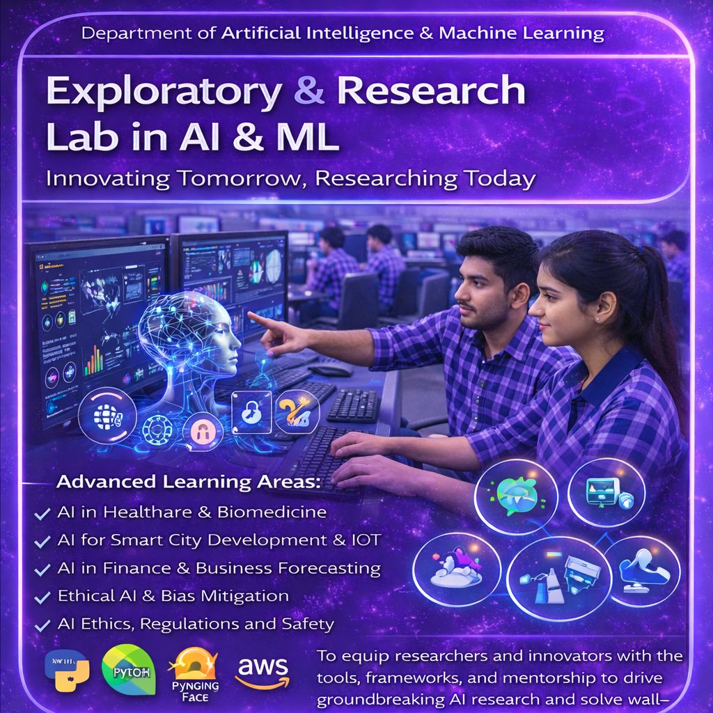 Vision: To become a center of excellence in Artificial Intelligence and Machine Learning by fostering innovation, research, and industry-integrated education. The department envisions developing globally competent professionals and ethical leaders who can design intelligent systems, drive technological advancements, and contribute meaningfully to societal and industrial transformation in an AI-driven world.