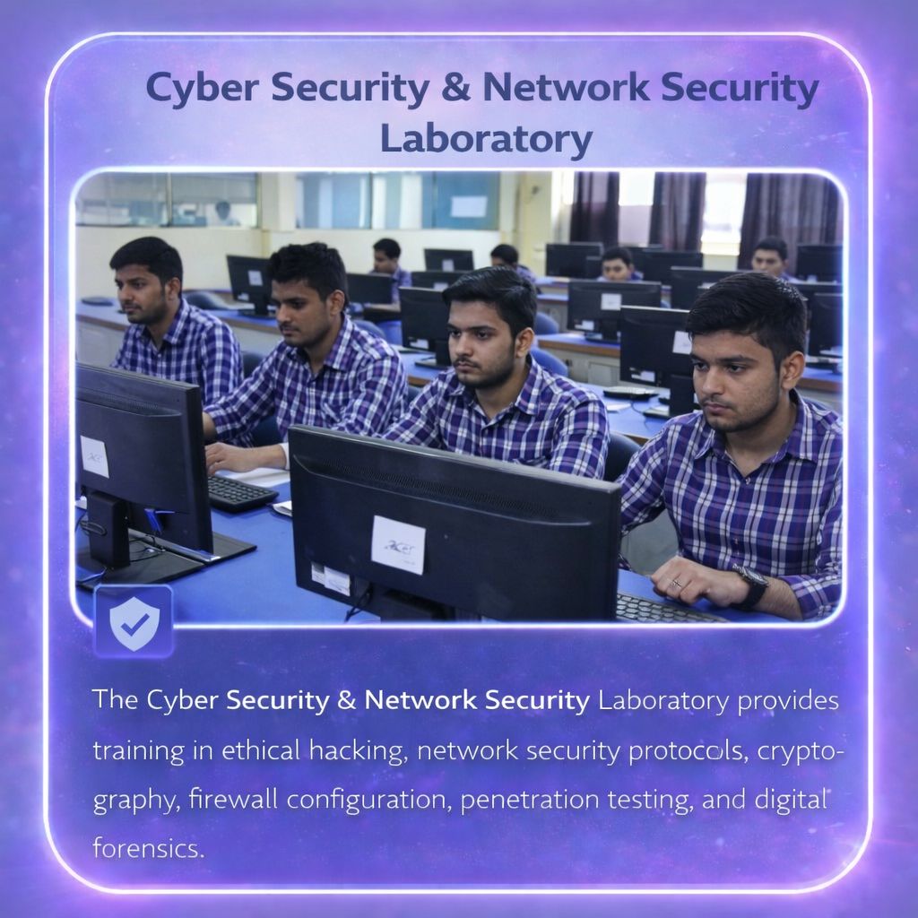 Covers network security, ethical hacking, digital forensics, penetration testing, and cyber awareness programs. Students participate in CTF competitions and security workshops.